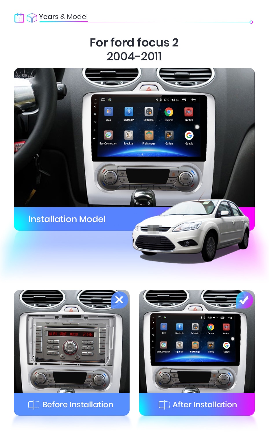 >> Junsun V1 for ford focus 2004-2011 Function 9 inch 2.5D capacitive Screen + Quad Core 1.2GHZ CPU + DDR3 1GB (2GB optional)Flash + 16 GB Memory (32GB optional) + Builtin Wifi (4G Network optional) + GPS Navigation (Map free update, only Junsun brand support)+ steering wheel control + Mirror link + Bluetooth + Builtin MIC + FM/AM + RDS (optional)+ support USB ADAS DVR function + Europe DAB Function + 1080P Vedio Play + HD 1024*600 + Tire pressure monitoring system >> OSD Language Russian,English,Spanish,Italian,French,Czech,Arabic,German,Hebrew,Chinese,Estonian,Polish,Filipino,Finnish,Korean,Dutch,Croatian,Latvian,Lithuanian,Romanian,Norwegian,Portuguese,Japanese,Swedish,Thai,Turkish,Ukrainian,Hungarian,Slovak,Danish,Slovenian. >> 24H*7 Service Supporting At Junsun, our goal is to keep working hard to make innovative hardware & software of the Car Multimedia player radio to give you that personalized experience. We provide updates for Firmware, Software, GPS Navigation maps for FREE.